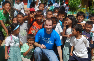 | The author with schoolchildren at Paaralang Elementary School © UNICEF Philippines/2009 |
