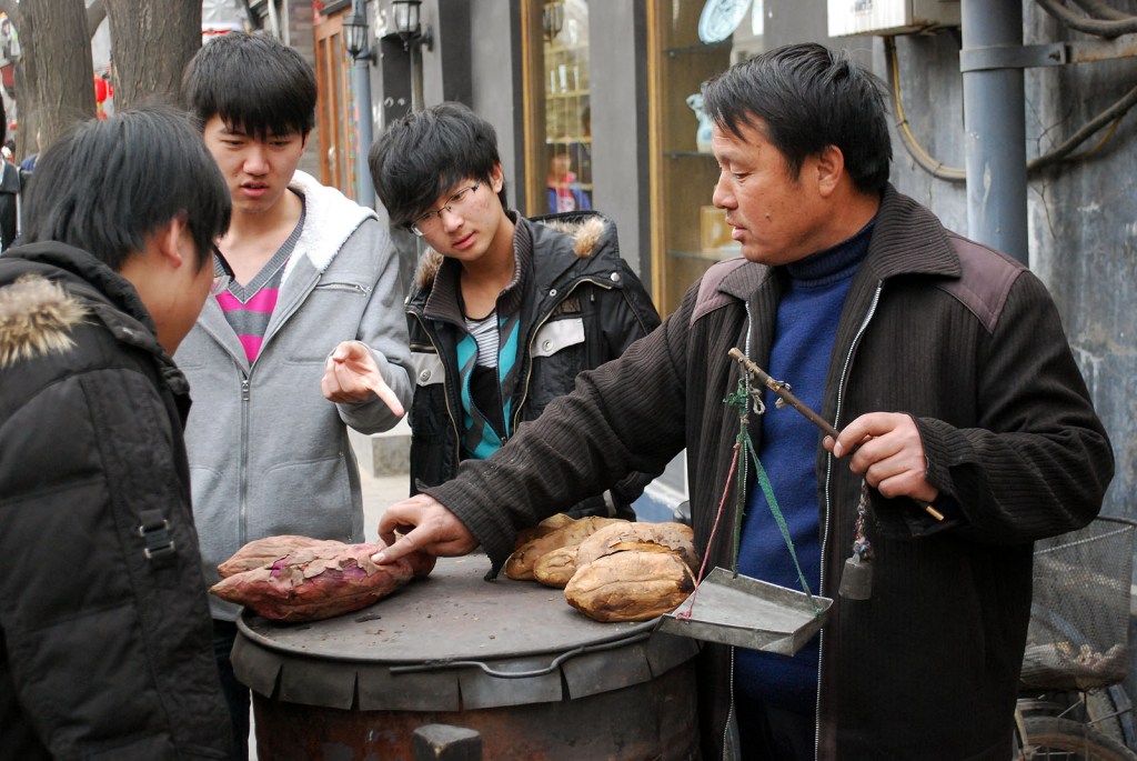 As the days went by, I started to notice old Beijing emerging from the cracks between the modern facades. The young, urban fashionistas were interspersed with shuffling old men in caps and jackets, more reminiscent of the Mao era. In the morning, the rickety bicycles re-emerged, some loaded up on the back with food produce, broomsticks or even on one occasion a leather armchair. The occasional street stall offered a range of skewers cooked in broth, while roasted sweet potatoes were sold from the back of wooden carts. “The smell of sweet potatoes always reminds me of Beijing,” said Michelle, an English language teacher I met on a weekend hike. “You just start eating them from the top, including the skin.”