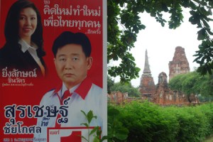 An election poster outside one of Ayutthaya’s ancient temples