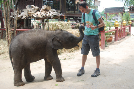 Me feeding a baby elephant at the Ayutthaya Elephant Palace