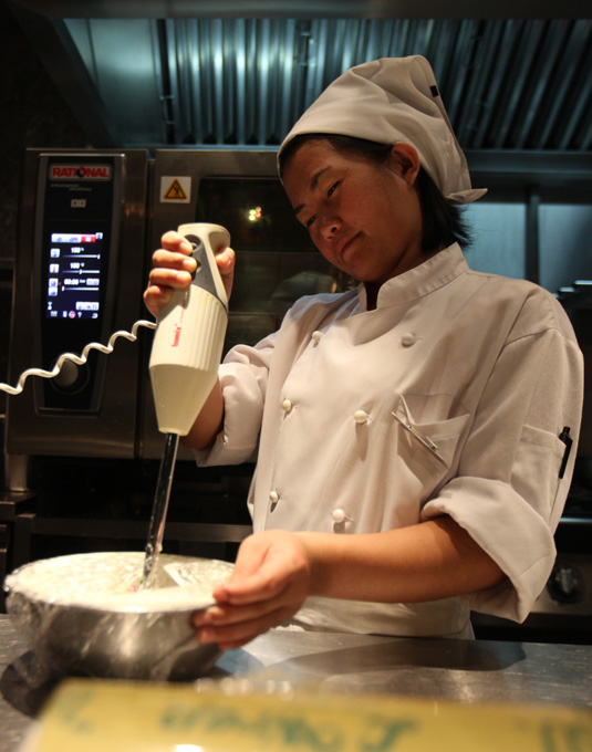“Daojai is a quiet girl but she’s motivated and works hard,” says Chef Tanai Jitmanowan. “I’ve seen her progress over the last month. She’s more fluid in preparing the food. If she wanted to, she could be a chef herself in five years’ time. JW Marriot is famous for its food so it could be a good career for her.”