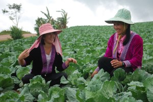 Half way through the course, Daojai went home for a weekend to visit her family in Tab Berk. The village sits upon a ridge at the top of the mountain range. The main industry in the area is cabbage farming, and the fields were full of women spraying crops with pesticide, protective masks over their faces. Men carried cabbages down from the fields in woven baskets on their backs. The air was cool and fresh, and full of the sounds of cocks crowing and crickets in the trees.