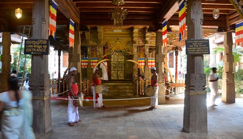 There was a long queue to pass outside the room where the Buddha’s tooth was housed, and you could only glance briefly inside. Most of the temple was off-limits to everyone except the monks, which added to its air of mystery. People were leaving offerings of flowers outside the tooth shrine and a Sri Lankan lady generously gave Joyce and I some of her flowers so we could take part in the ceremony.