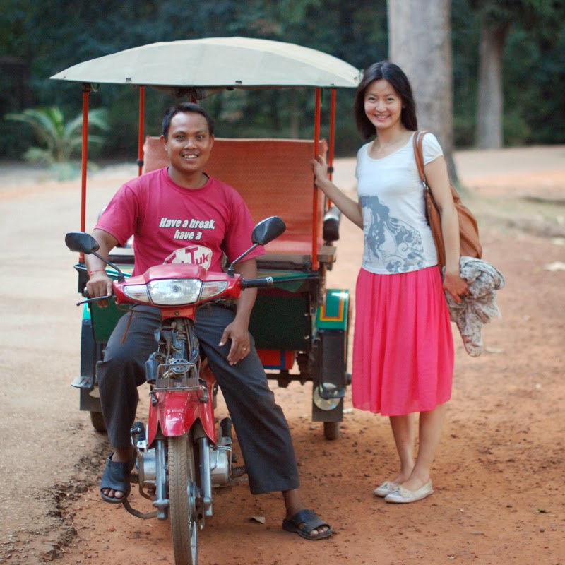 The next day, we changed our strategy and hired a tuk-tuk driver, Somrach. Appropriately enough, he wore a t-shirt saying ‘Have a break, have a tuk-tuk,’ parodying the famous Kit-Kat slogan. Following Lonely Planet’s advice, we revisited the temples in the reverse order to the organised tours, with a break in the middle of the day. This enabled us to dodge the worst of the crowds.