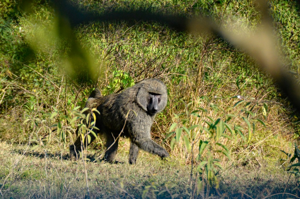 A baboon in the bushes near our safari lodge. They were very bold – one of the males (possibly this one) would come and sit on the swing in our garden in the mornings © Andrew Brown/2021/Kenya
