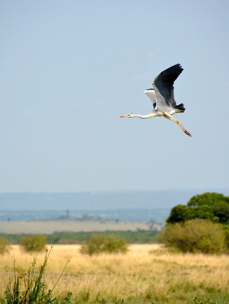 A heron takes off from a tree over a small lake and marshland © Andrew Brown/2021/Kenya