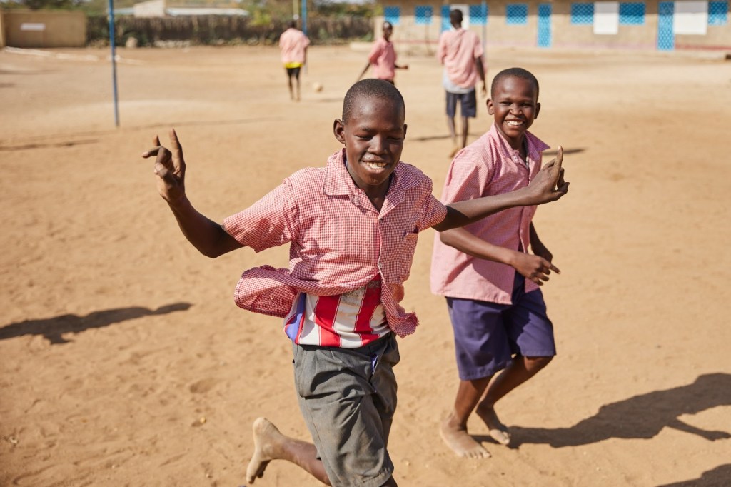 As the school day finishes in Lodwar, Turkana, a group of boys runs out onto a sandy football pitch between their classrooms. There is a flash of colour beneath their pink school shirts, which some of them peel off to reveal international football club shirts beneath. They run up and down the pitch with tremendous energy, gesturing at each other. Finally, 13-year-old Ezra, wearing an Atletico Madrid t-shirt, gets a clear shot at the goal. He lines it up and shoots. The ball swerves past the goalkeeper and lands behind the goalpost, kicking up a small cloud of dust as it lands. Ezra throws up his arms in celebration. But there is little or no sound from the players, all of whom are fully or partially deaf.