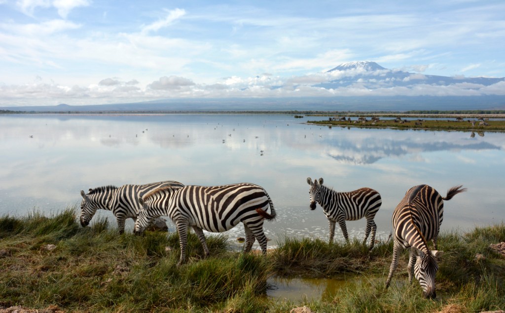 Zebras graze on the banks of Lake Amboseli. © Andrew Brown/2022/Kenya