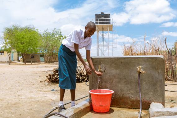 Solar power allows for deeper drilling than hand pumps, providing access to safe water all year round. The pump at Nabulon Girls Primary School also provides safe water for a nearby health centre and the local community. In addition to the water system, UNICEF also supported the school to set up a dormitory, so that girls whose families were migrating in search of pasture, could board at the school instead of dropping out.